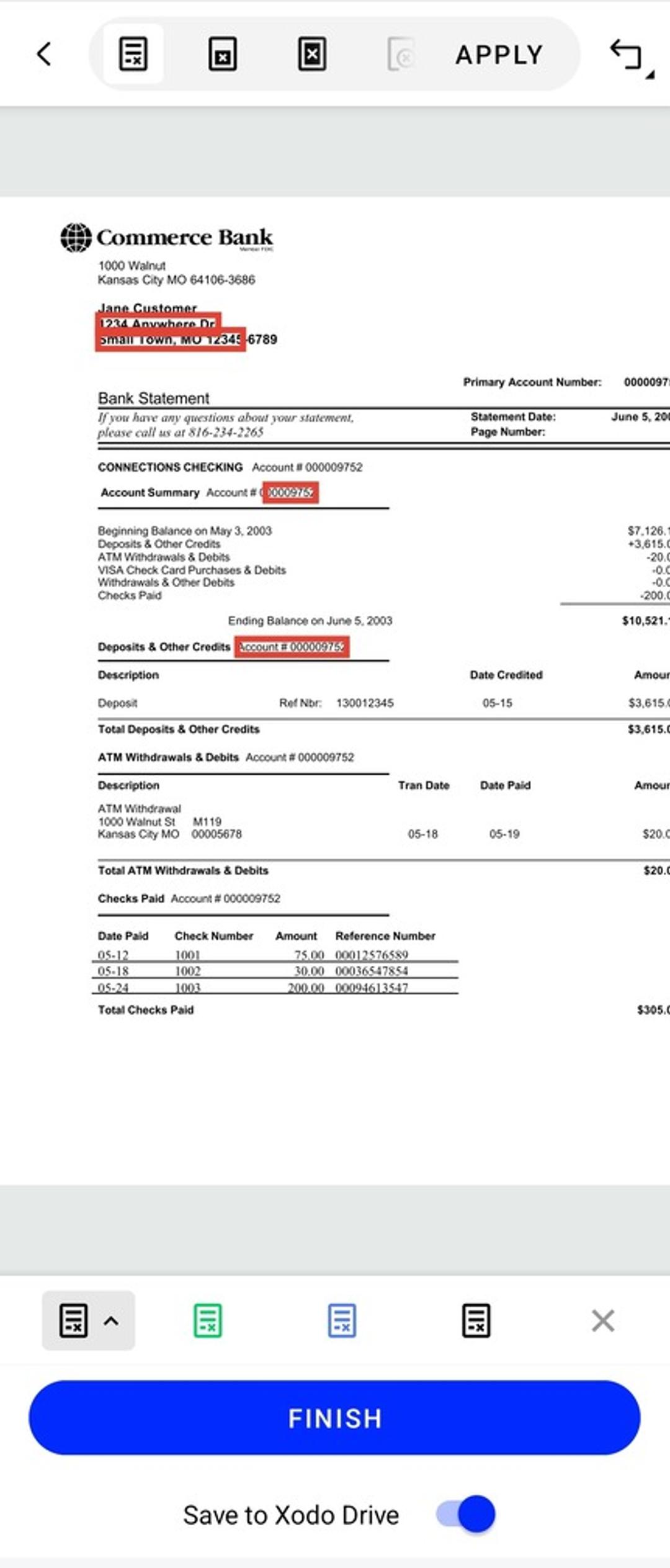 Securely redact a bank statement PDF with Xodo redaction tools. Available offline on Windows, macOS, Linux, online, and on iPhone and Android for maximum efficiency.